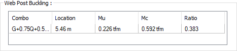 Web post buckling ![]() Combo: It is the combination that creates the most unfavorable section forces. |