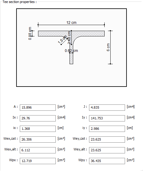 Section properties ![]() Ix, net: Shows the net moment of inertia in the x direction. |