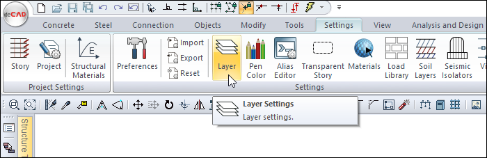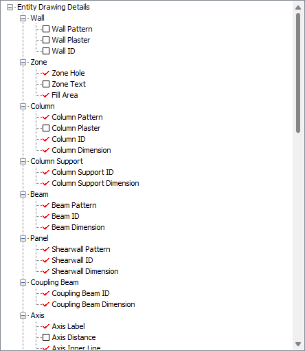 Entities drawing details list ![]() The layers included in the project are listed. |