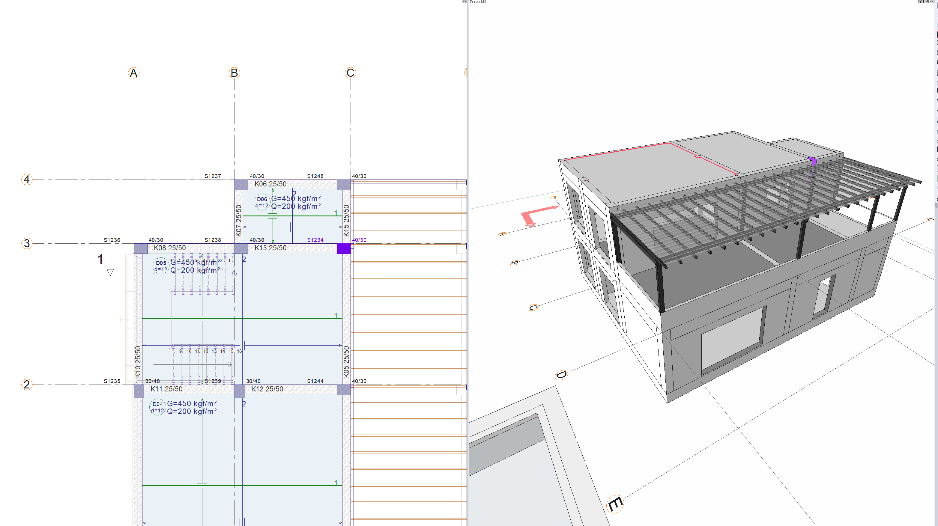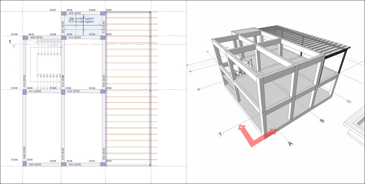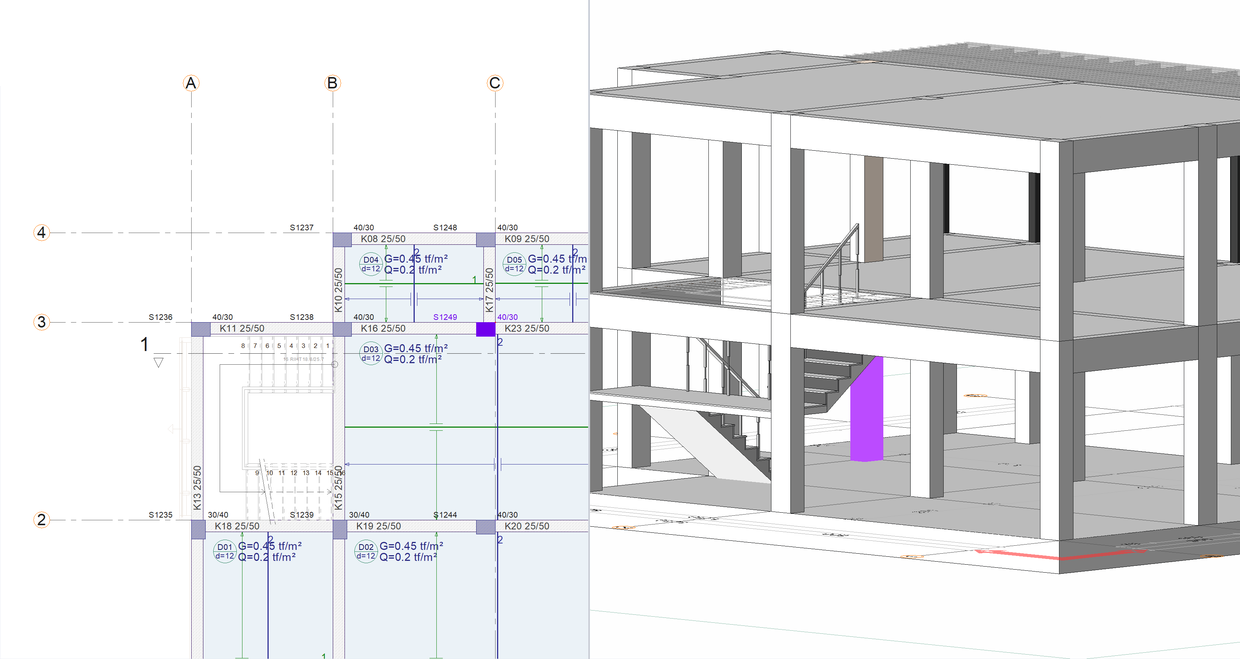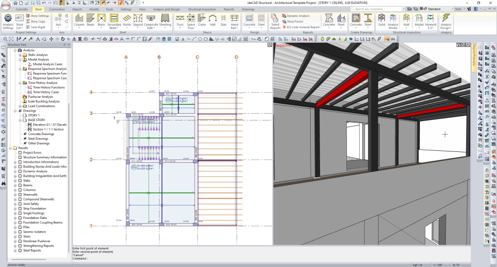 The project, which was prepared with ideCAD Architectural, was opened with ideCAD Structural. You can download the project and interfere with the structural system. |