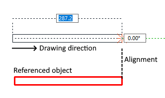 Alignment to another object can be obtained using the ortho. While drawing objects such as beams, shearwalls, lines; Alignment to the end point of another object can be made by holding down the "shift" key after defining the first point.