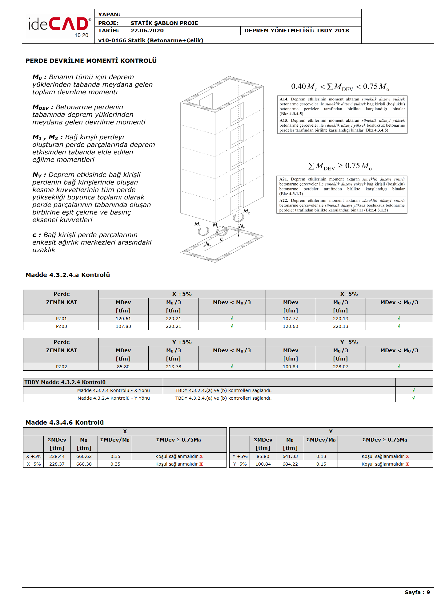 "Curtain Tipping Moment Control" report is shown as an example below. Since Equation 4.3 is not provided in this report , for cases where all earthquake effects are met with limited ductility level frames , the R and D coefficients given in Table 4.1 and the maximum permissible IMS should be considered.