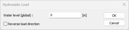 Water level (global) ![]() The water level elevation is entered for the water load to be added. |