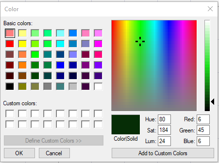 Select the color you want in the color dialog that opens and click the OK button to close the dialog.
