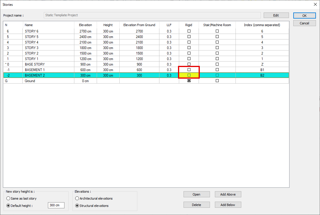 If any of the conditions 3.3.1.1 (a) and (b) are not met, the rigid basement acceptance shall not apply. In this case, basements and buildings without basement buildings ' upper elevations of the building will be defined on the basis base. In this case, the building height H N is the height from the foundation top level to the building top level. If any of these two conditions are not met, the Rigid column marks should be removed from the Stories window and the analysis should be repeated.