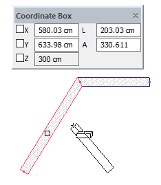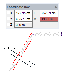The second point is determined by clicking the left mouse button in the drawing area. After that, the objects to be drawn are drawn perpendicular to the specified reference direction.