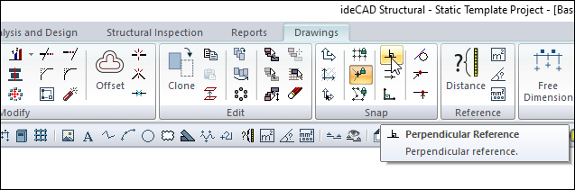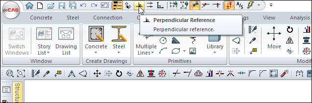 Perpendicular Reference icon is clicked from the quick acces toolbar in the ribbon menu.