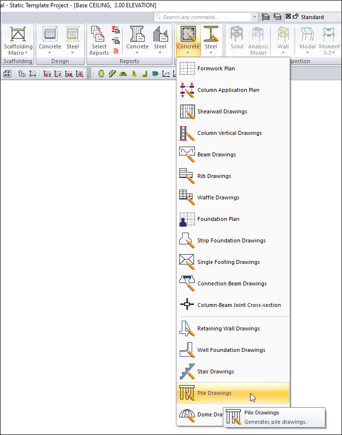 Click the Pile Drawings icon.