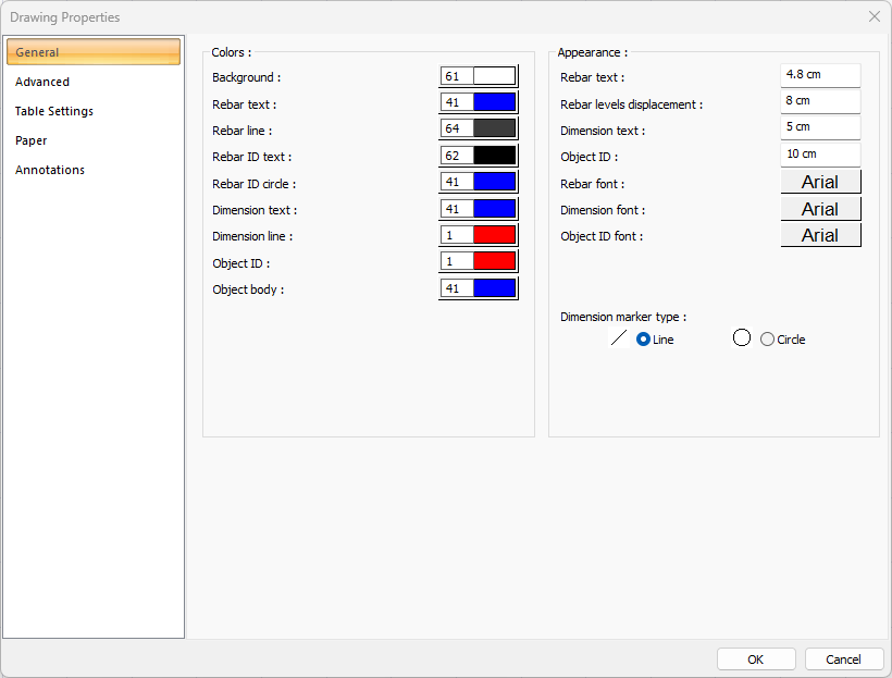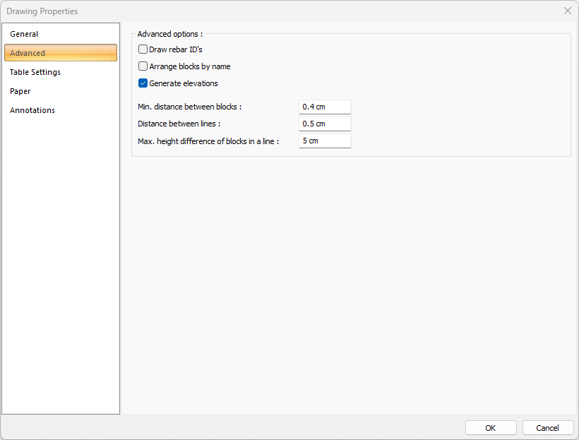 Draw rebar ID’s ![]() If checked, rebar ID’s are shown in the drawings. If not checked, it will not be displayed. |