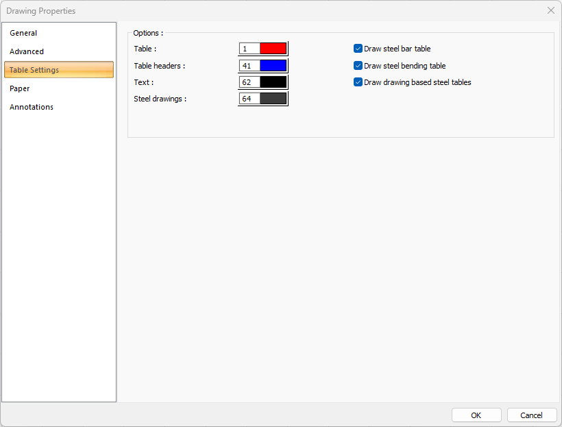 Steel drawings ![]() Sets the color of the rebar drawing. When the color box is clicked, the appropriate color is selected from the window that opens. |