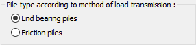 Pile type according to method of load transmission ![]() Provide information whether the pile will be designed as an end bearing piles or a friction piles. |
