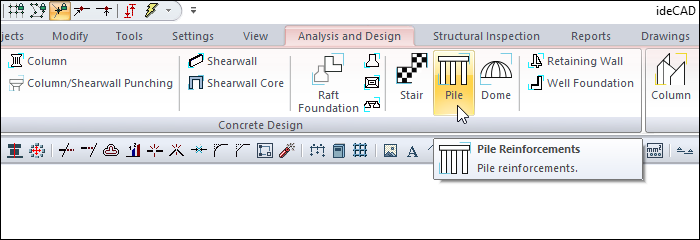 After analysis, you can access it by clicking on the Pile command under the Concrete Design title of the ribbon menu Analysis and Design tab .