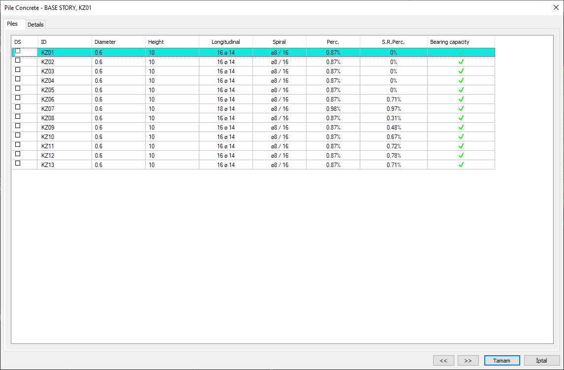 ID ![]() Pile is the name of the foundation in the plan. (KZ1, KZ2, KZ12 etc.) In case of negativity, a term related to negativity is added next to the name. Like KZ11 (M) .. |