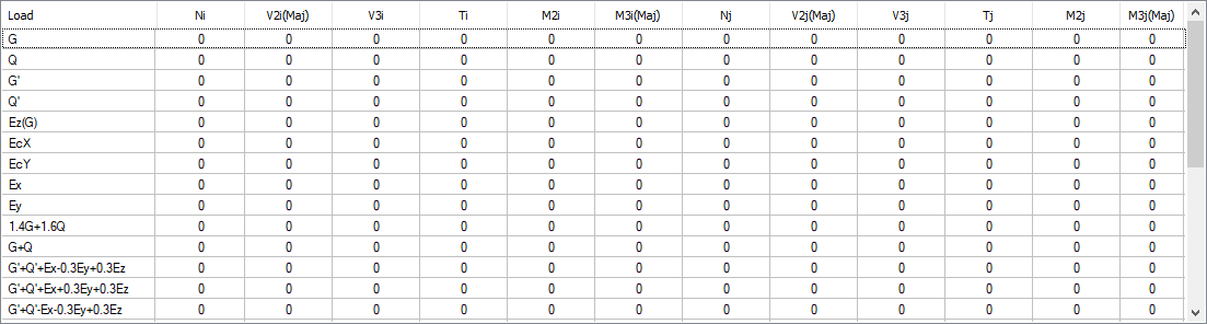 Table of forces ![]() Load: The name of the respective load or load combinations. |
