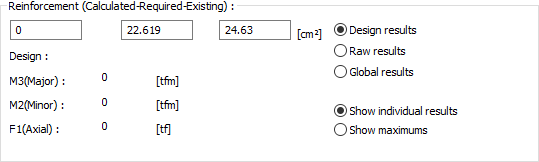 Reinforcement (calculated-required-existing) ![]() Design: It is the name of the combination used in pile foundation reinforcement calculation. |