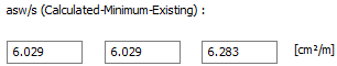 asw/s (calculated - minimum-existing) ![]() It is the area of 1 meter of single arm stirrup found for densification zone as a result of shear force calculation. And it is calculated. |