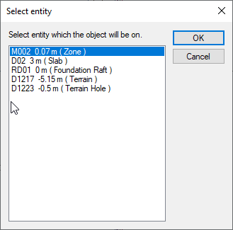 The select entity dialog will open. Select the object you want to place on the object from the list. Click the OK button to close the dialog.