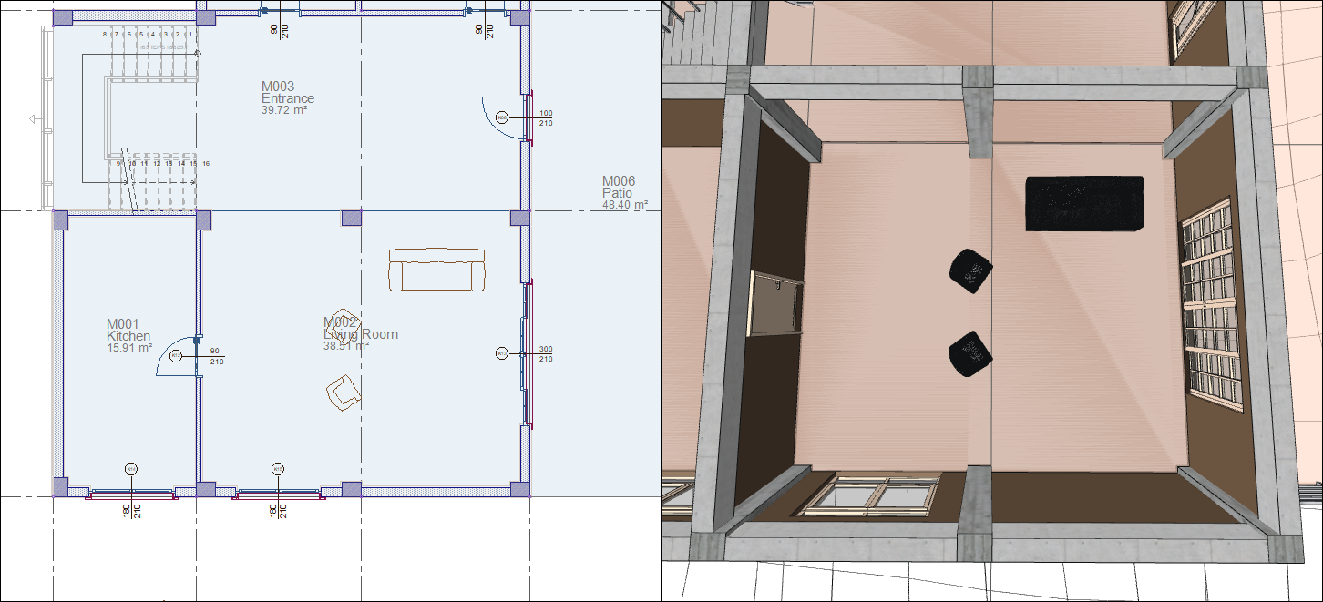 To follow the furnishings on the perspective screen, uncheck the slab layer from the layer list.