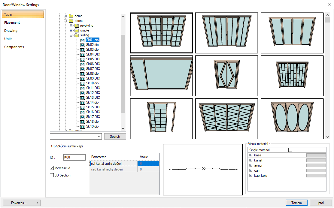 In the types tab select the line 1.50/doors/sliding/Sk01.dio from the list.