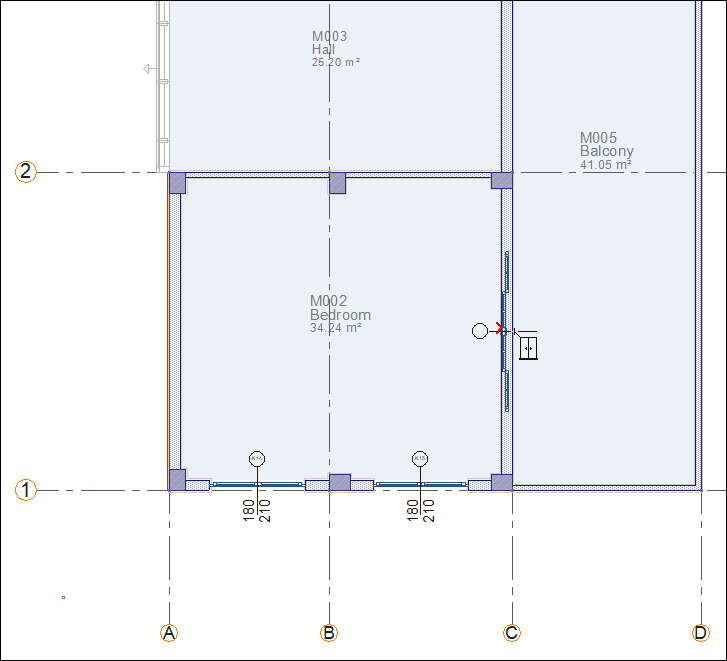 Move your mouse on the axis C to the middle of the wall delimited by axes 1 and 2.