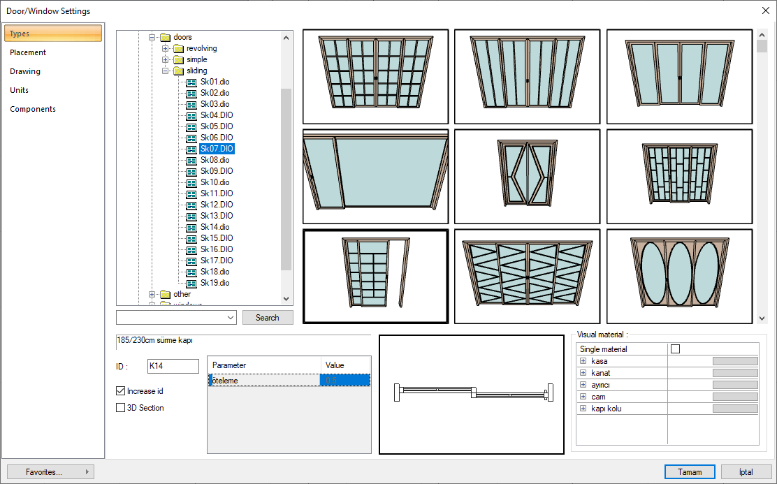 In the types tab select the line 1.50/doors/sliding/Sk07.dio from the list.
