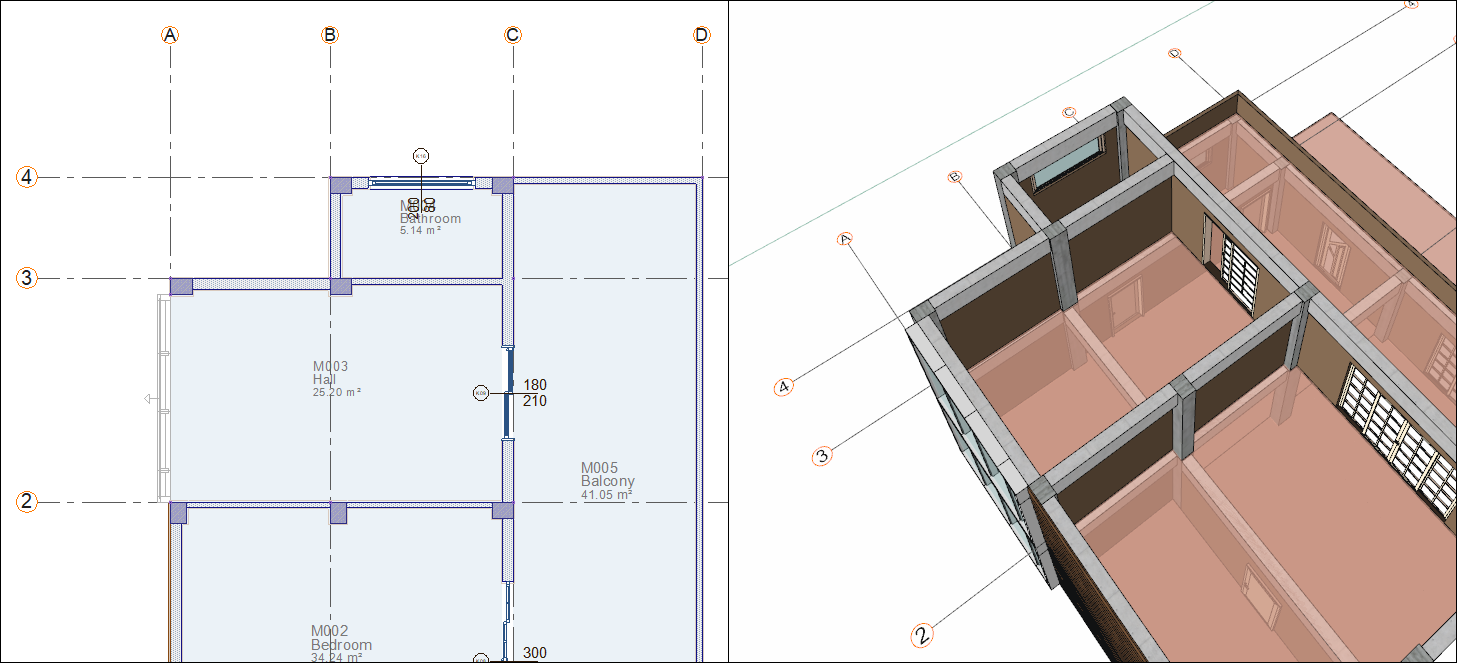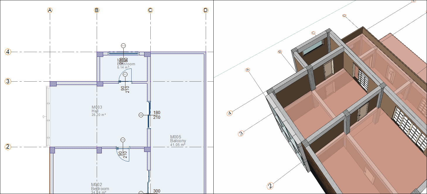 Previous steps have been followed in the project file named Place the Upper Story Doors. You can download the file and follow the steps given in this title on the project. |