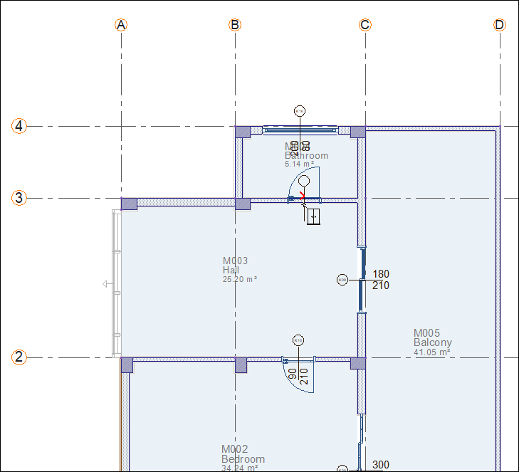 Press the Esc key on the keyboard to exit the command. Upper story doors are completed.