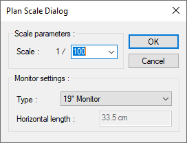 For example, if the Plan Scale Setting is set to 1/50, a 10-meter object will be 20 cm. when measured on the monitor with a ruler. is read.