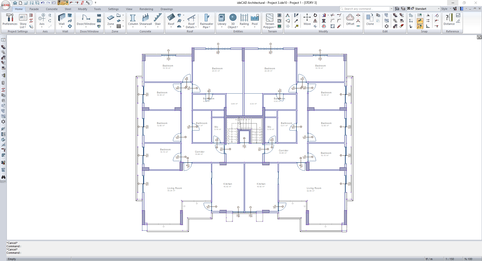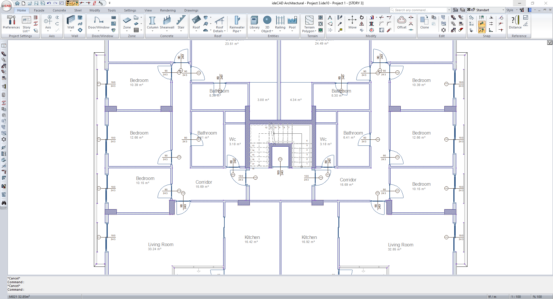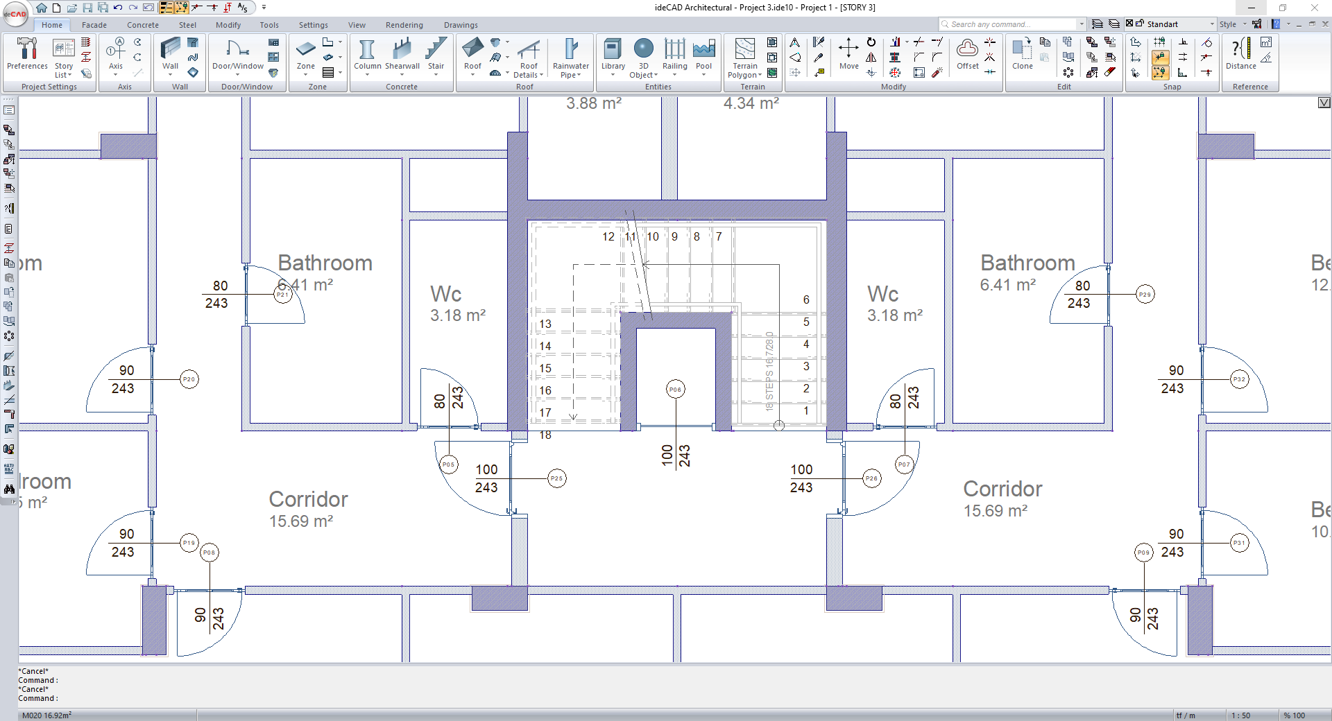 With the plan scale and monitor selection feature, the ideCAD automatically zooms into the drawing. When the object length is measured with a ruler on the monitor, it is read at the defined scale value.
