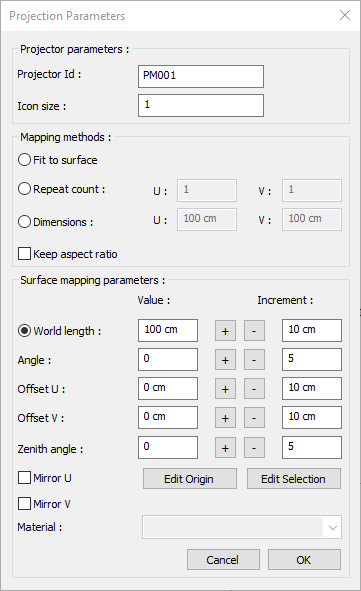 Keep aspect ratio ![]() If checked, the texture is edited by entering a value in the U box from the number of repetitions and dimensions lines. |