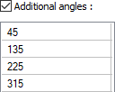 Additional angles ![]() Activates polar tracking for additional angles other than increment angle. Polar tracking is also activated for additional angles. |