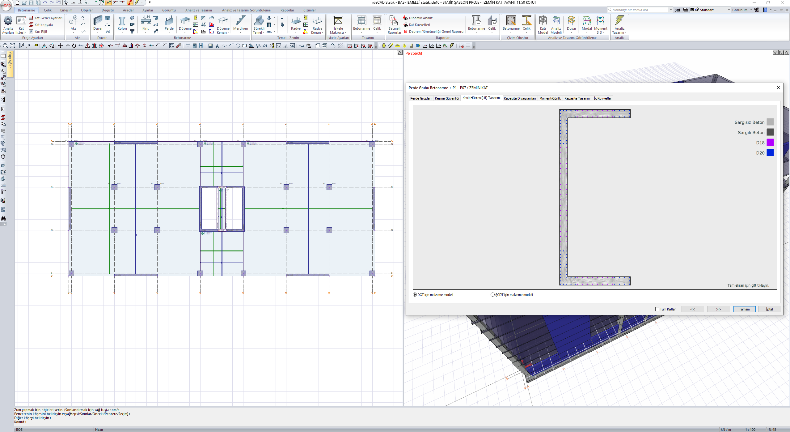 In I, T, L, U or C section shear walls , the ratio of the length of the shear wall arm (or arms) to the thickness of the section may be less than 6, if the tie beam curtain meets the condition. This control is not carried out if the tie-beam curtain condition is complied with.