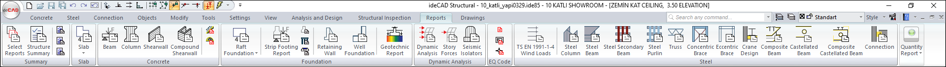During the project, any report of an analyzed structure is taken under the reports menu. Under the report menu, there are all the headings that can be listed in the program. These reports can be taken individually or can be prepared at once with the Select Report command.