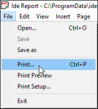 Click the File/Print line in the ideCAD Report.