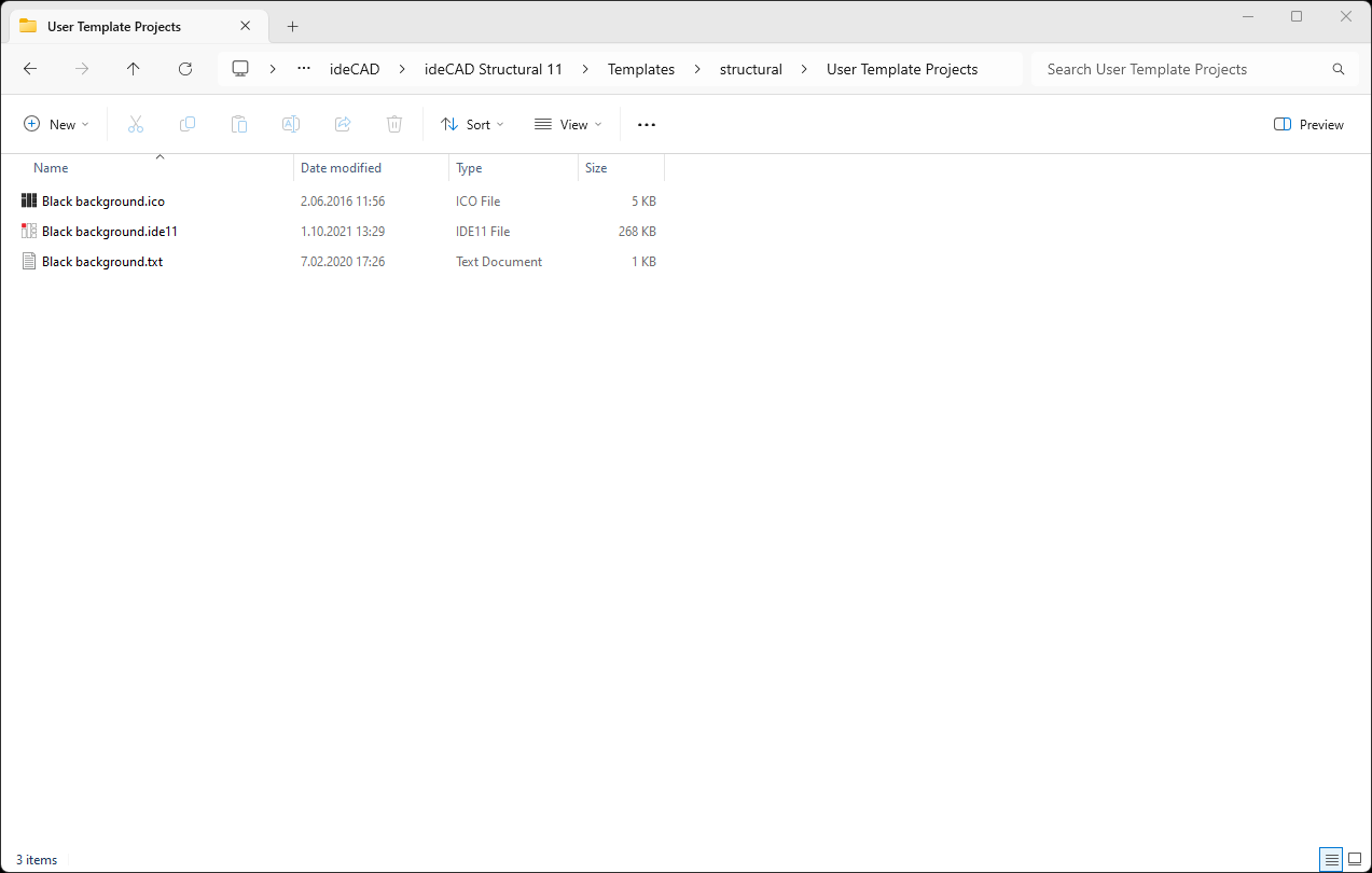 Under the Template/structural folder, there is the default project files and the User Template Projects folder created by the ideCAD during program installation.