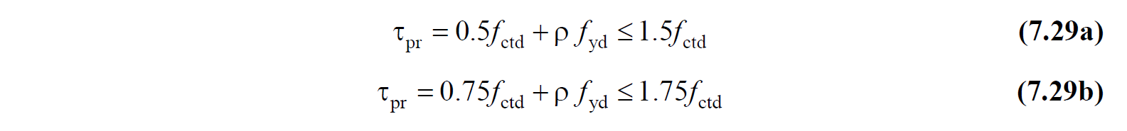 TBDY Article 7.11.11 - The punching strength of the reinforced slab shall be calculated with Equation (7.29a) in terms of shear stress when the punching reinforcement is used as a uniformly spaced crossover or stand reinforcements, and Equation (7.29b) when shear wedges are used .
