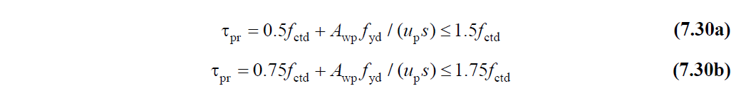 In cases where two vertical sliding wedge rails are used as punching equipment, the maximum punching strength is 1.75f ctd according to TBDY Equation 7.30b .