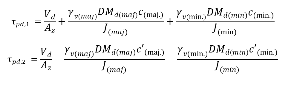 τ pd, 1 , τ pd, 2 : Refers to the punching stresses based on the design. Considering the effect of axial forces and bending moments, the slab is the largest and smallest punching stresses and is calculated with the equations shown below.