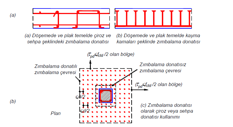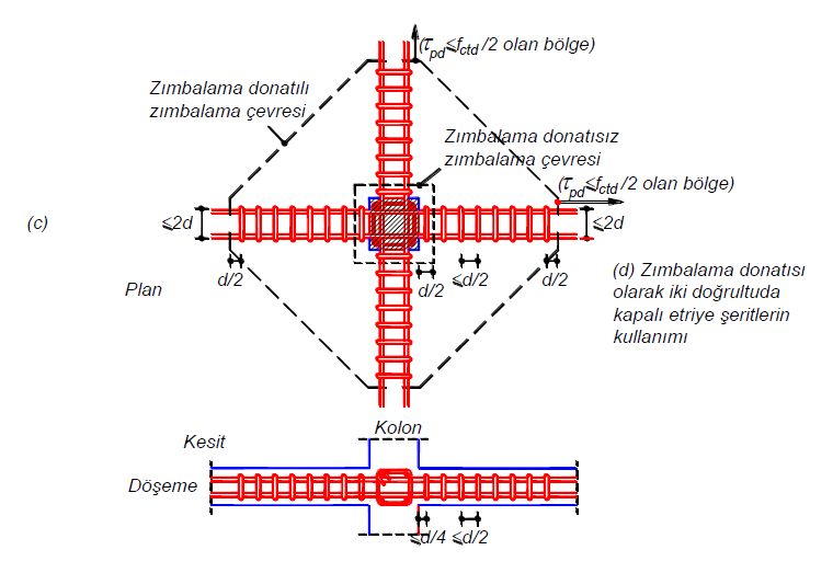According to Article 7.11.10 of TBDY , in cases whereτ pd ≤ f ctd condition is not fulfilled and plate thickness is greater than 250 mm, punching strength can be increased by using punching equipment.