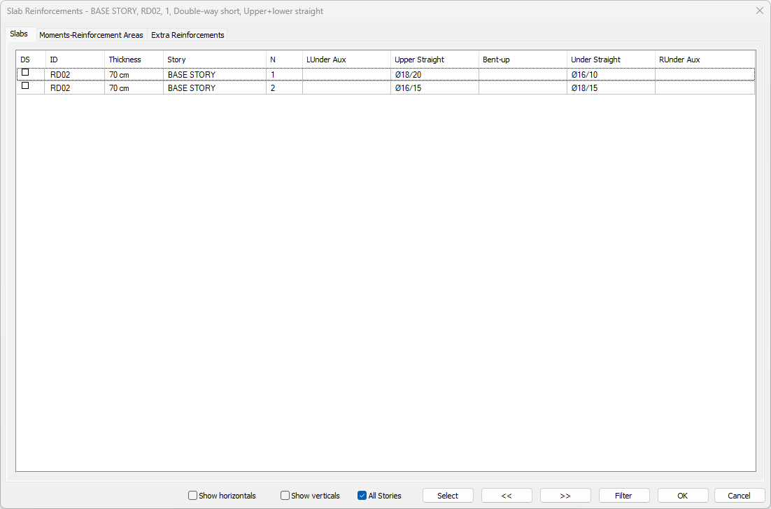 Show verticals ![]() It displays the vertical reinforcements in the slabs by filtering, and the horizontal reinforcements are hidden. |