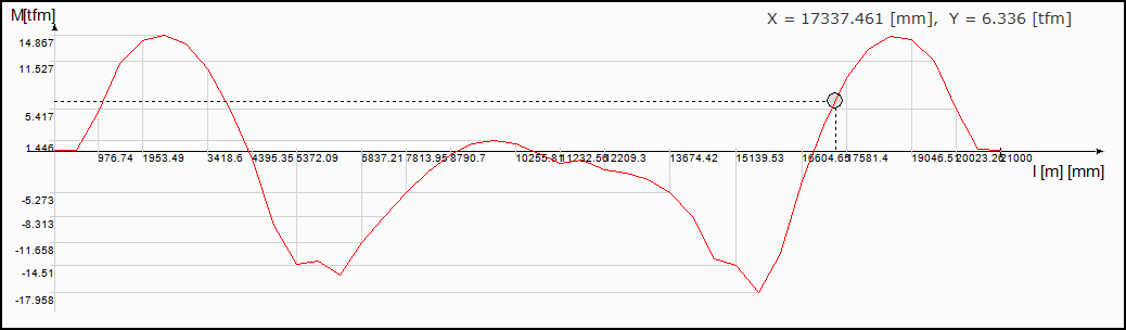 Moment diagram ![]() The moment diagram according to the selected combination is displayed on the analyzed calculation axis. When you move the mouse over the moment diagram, the position of the cursor on the diagram is shown. X represents the Y moment value for the left distance. ![]() |