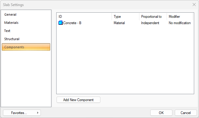 Click the OK button. The "Component Selection" dialog will be closed. A summary line of the material will appear in the Building Components tab. More than one material assignment can be made to an object.