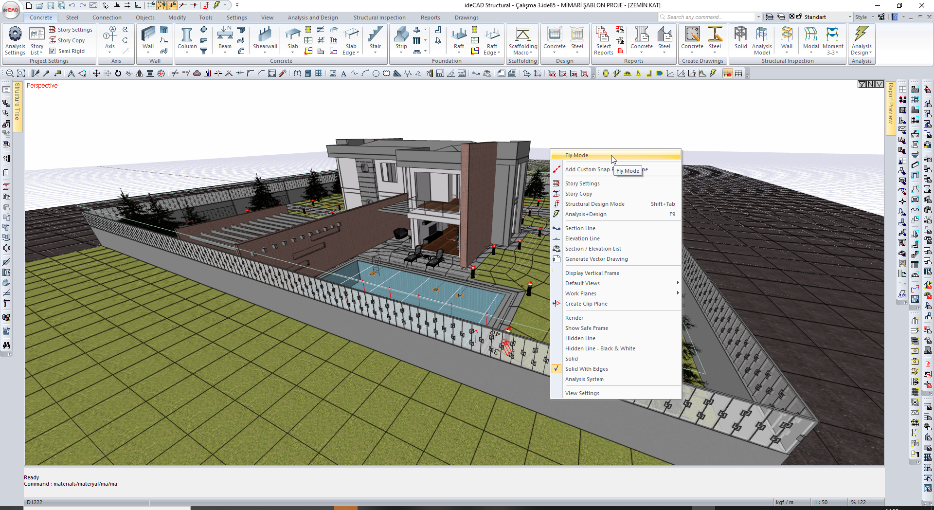 Fly Mode is designed to be able to examine the model as if it were navigating inside . By using the keyboard arrow keys, the structure can be navigated easily, the direction of view can be determined with the mouse movement.