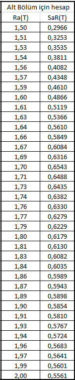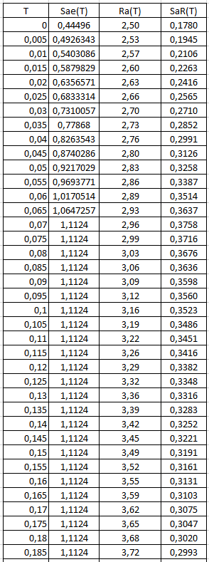 In the following visuals , the calculation of Ra (T) and the calculation of the reduced design spectrum with excel are included. The equations given above are used in this calculation.