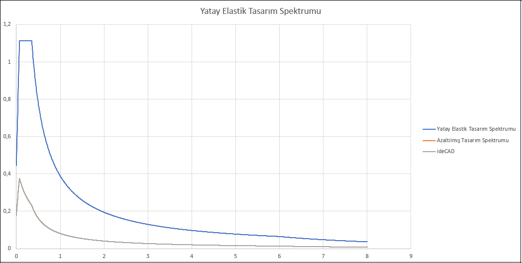 To achieve the reduced design acceleration spectrum that the program calculates for the upper section, simply type 'exportspectrum' in the lower toolbar command line and press enter. Program spectrum txt. file as Exp_spec.txt in the Computer: C: Program Files: ideCAD v10 folder. From here, you can take the txt file and compare the spectrum calculated by the program with manual calculation in excel.