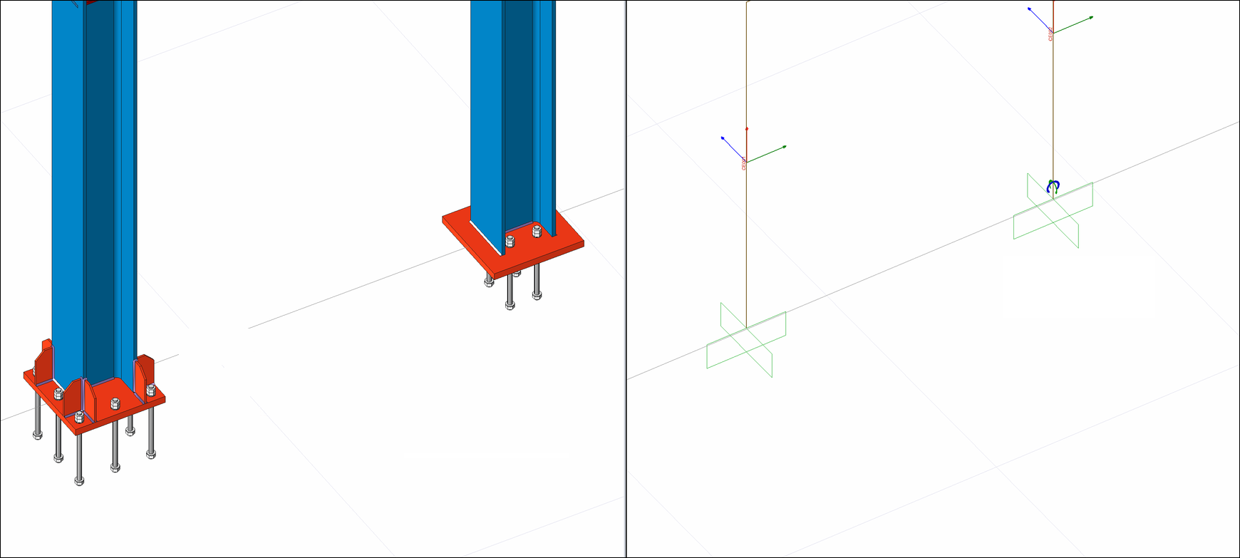 The degrees of freedom in steel elements are directly related to the defined connections. According to the type of connection to be defined, the behavior of rigid connections, hinged connections and semi-rigid connections is reflected in the analysis model.