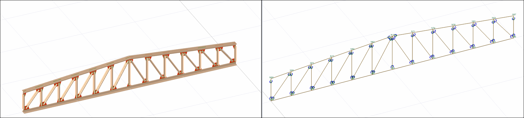 Articulated connections and analysis model defined for truss elements are shown in the picture below.