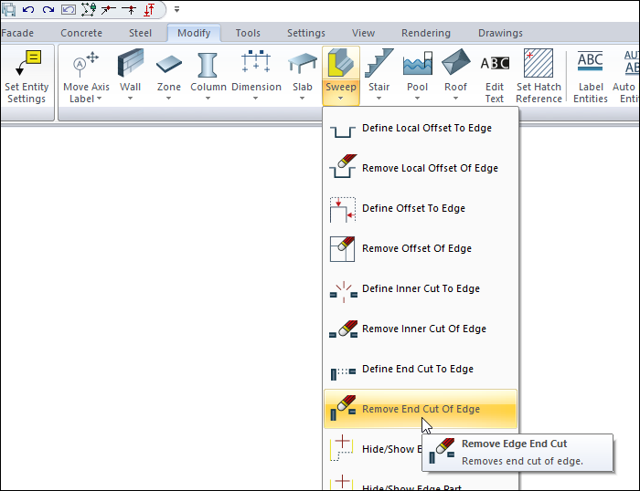 Remove End Cut of Edge command removes the gap created by define end cut to edge.