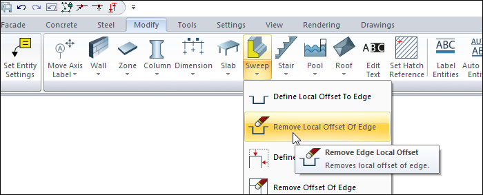 Remove Local of Edge command deletes the tooth created with the define local offset to edge command on the sweep.