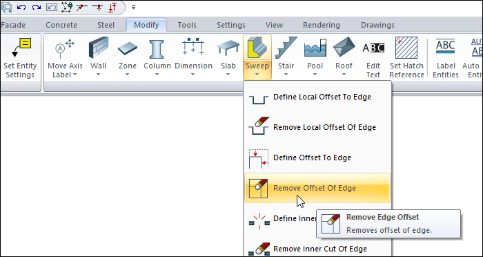 Remove Offset of Edge command removes the offset operation performed with the define offset to edge command on the sweep.